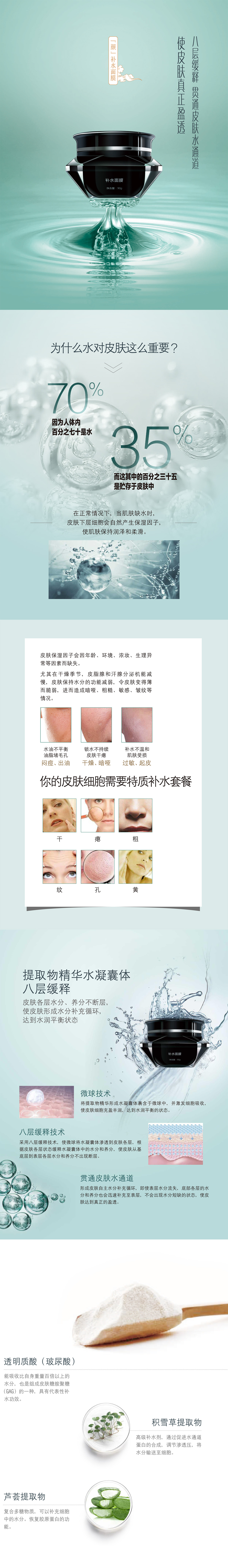 釆用微囊包裹技术工艺,将人参、多肽等精华包裹成微小物质,以达到有效保鲜和缓释,更便于有效皮肤滋润,保湿、修复,保持肌肤水分充盈持久,达到水润平衡状态。
